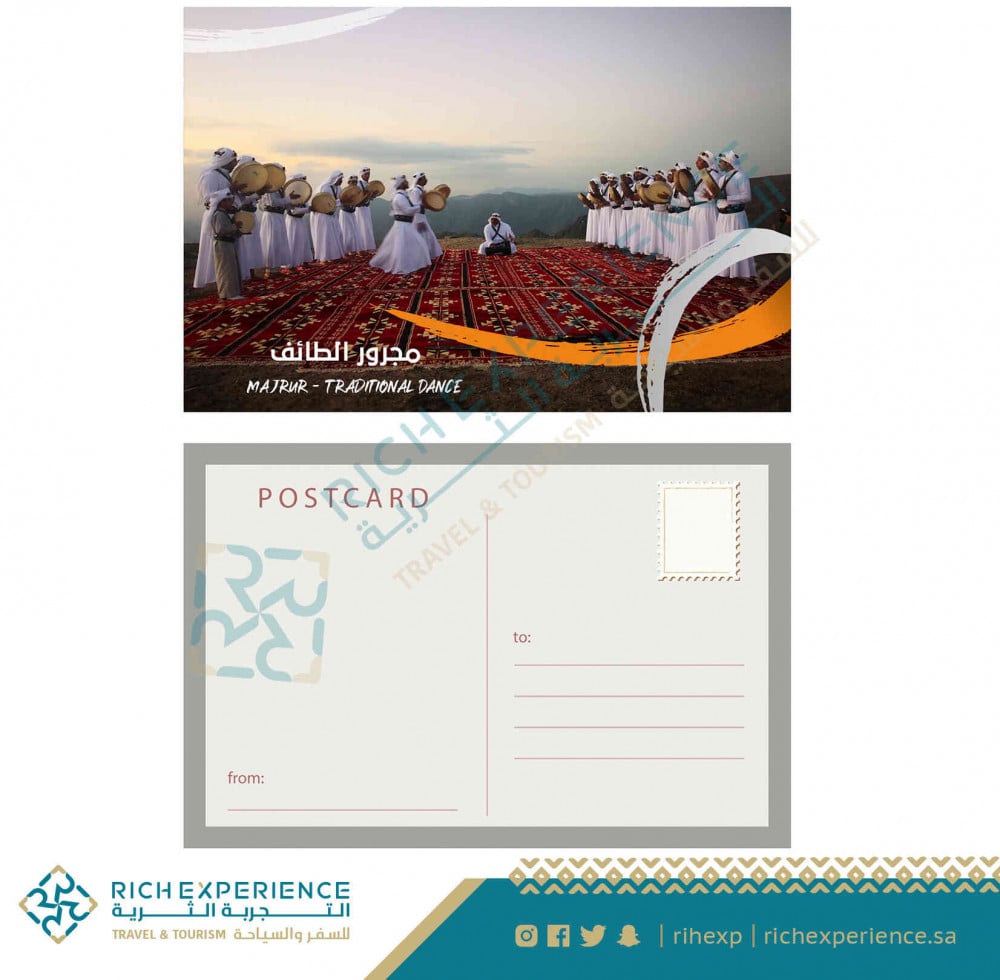 بطاقة تهنئة رقمية تحمل صورة فن المجرور ( فلكلور شعبي بمحافظة الطائف )