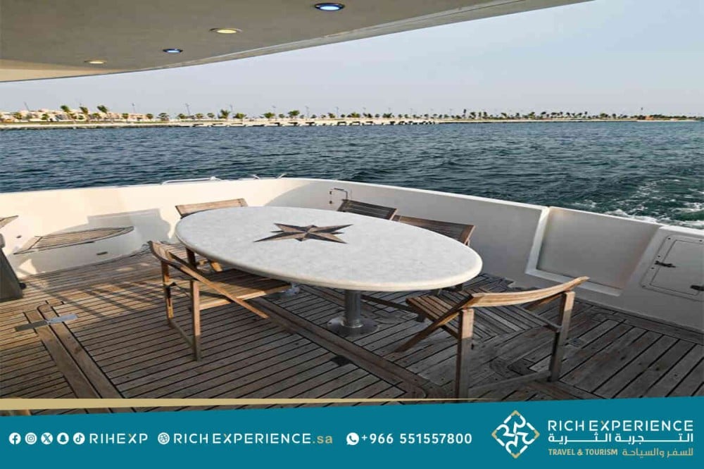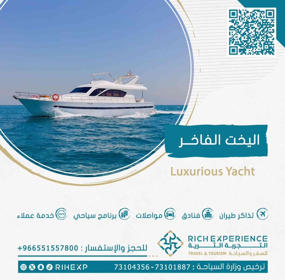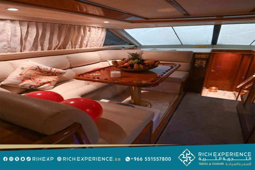 • يخت فاخر 3 غرف نوم + 2 دورات مياه + مطبخ وطاولات طعام + صاله فخمة مع تلفزيون