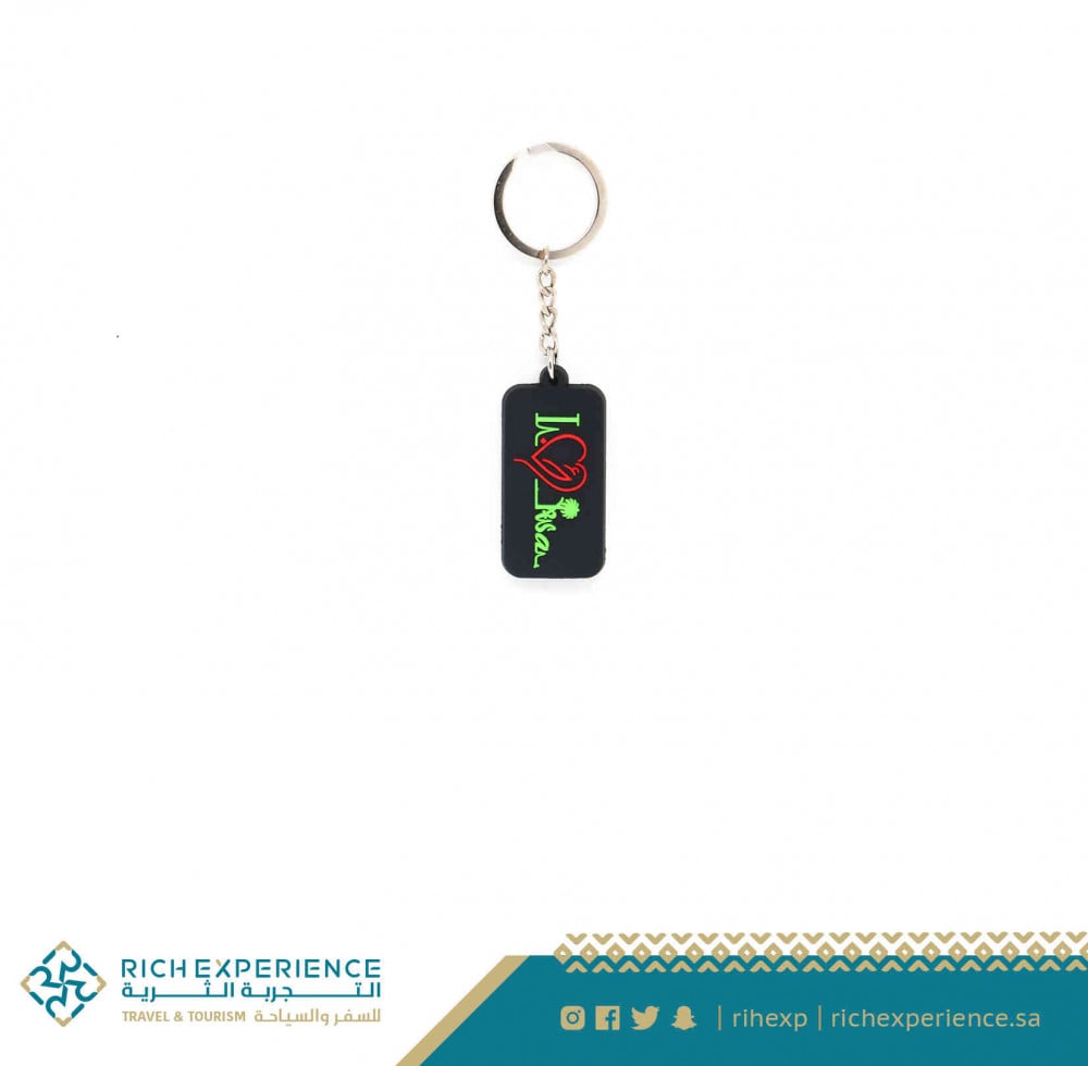 A Piece Made Of Vinyl Material Bearing The Inscription Of The Clock Tower In Mecca Fused With A Metal Key Chain