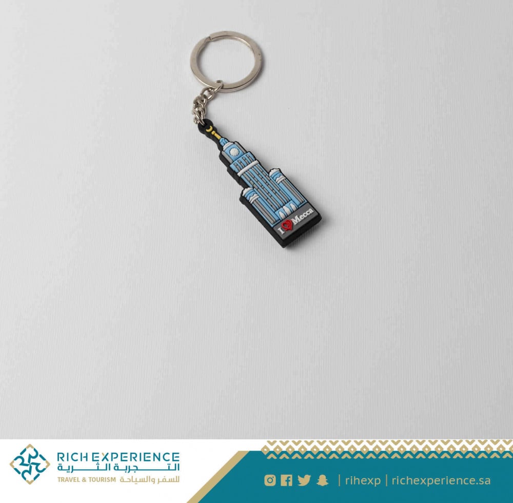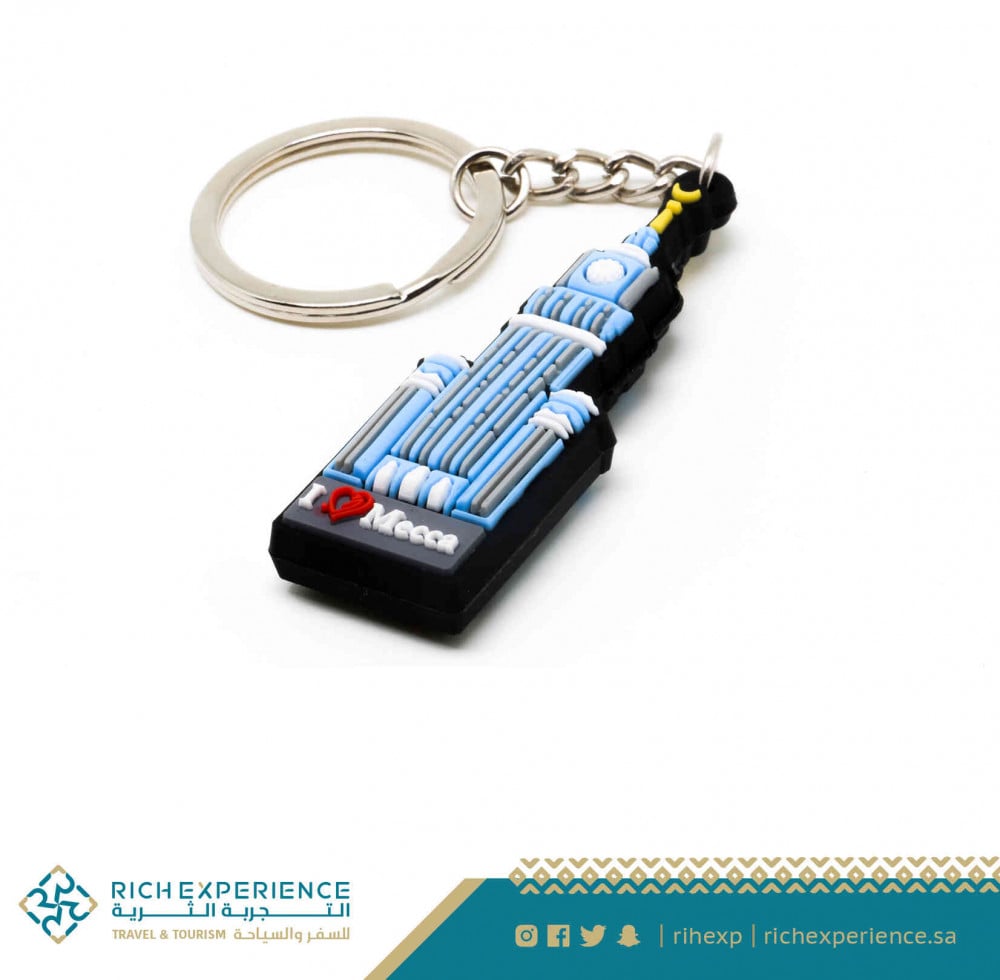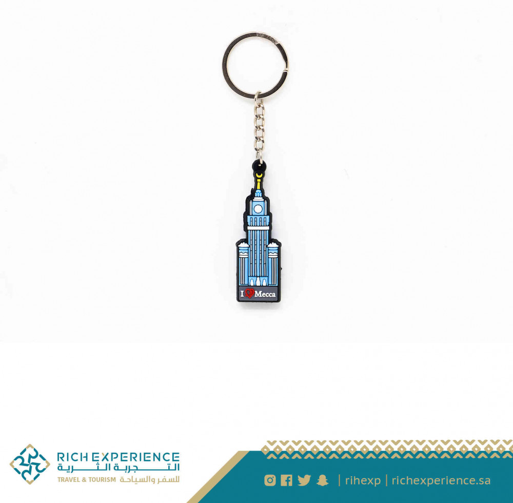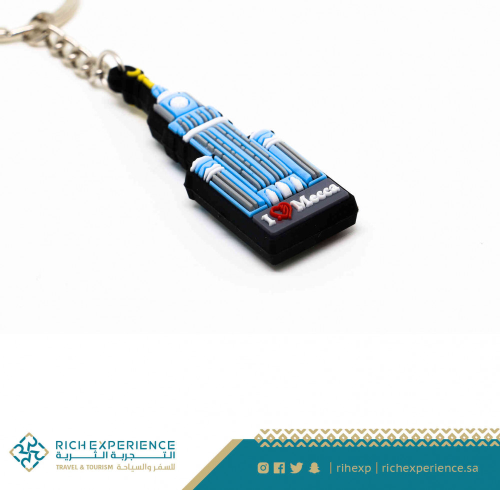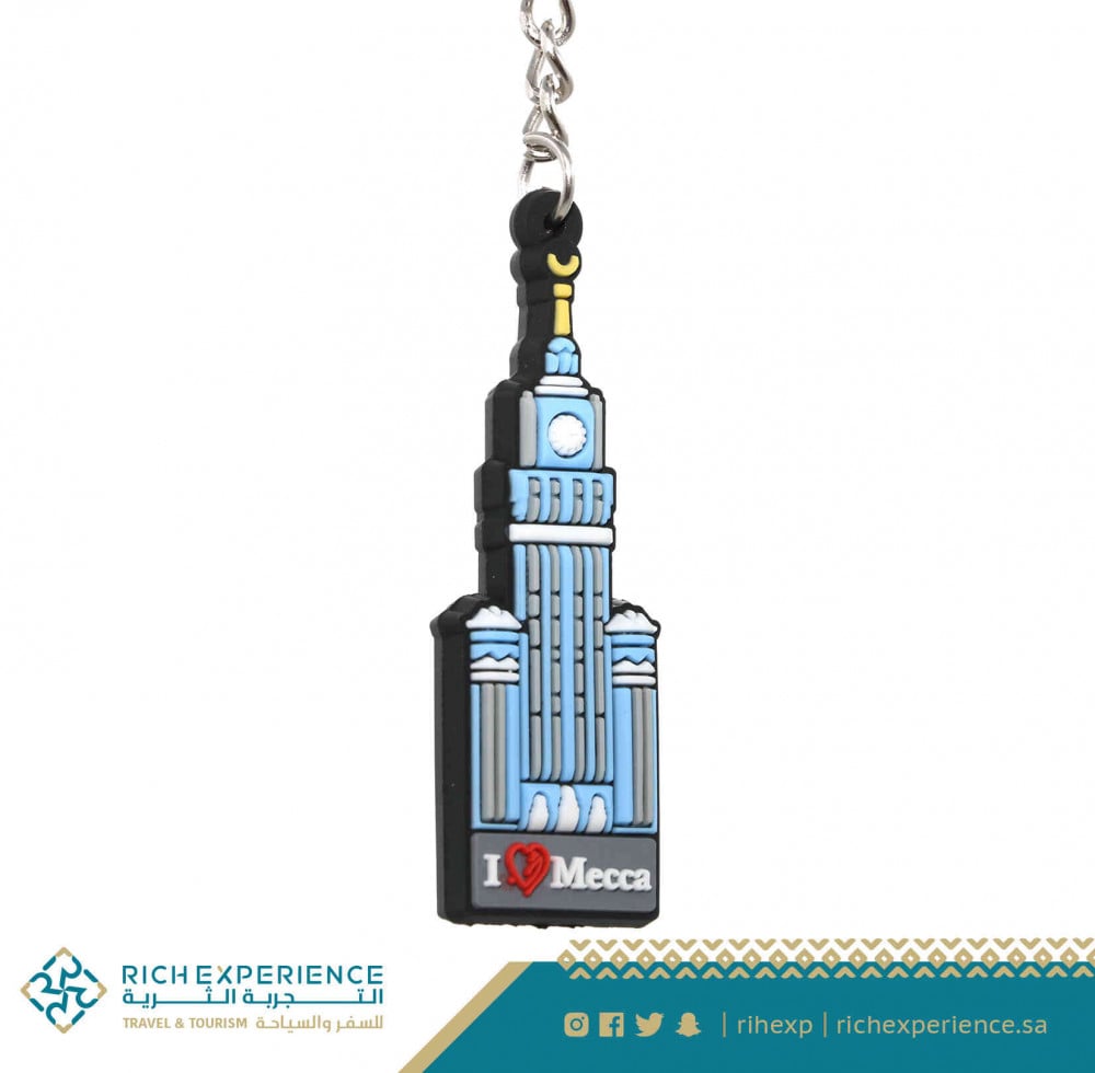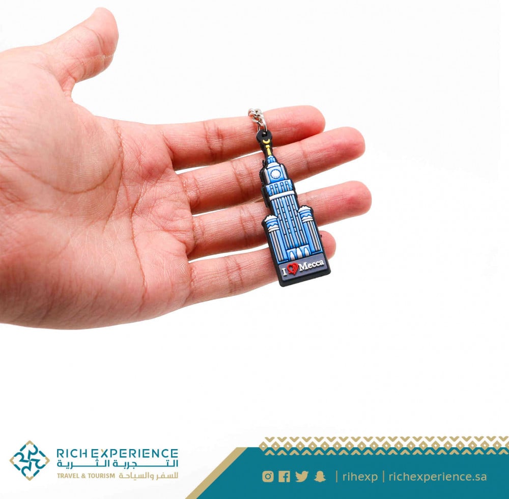 A Piece Made Of Vinyl Material Bearing The Inscription Of The Clock Tower In Mecca Fused With A Metal Key Chain